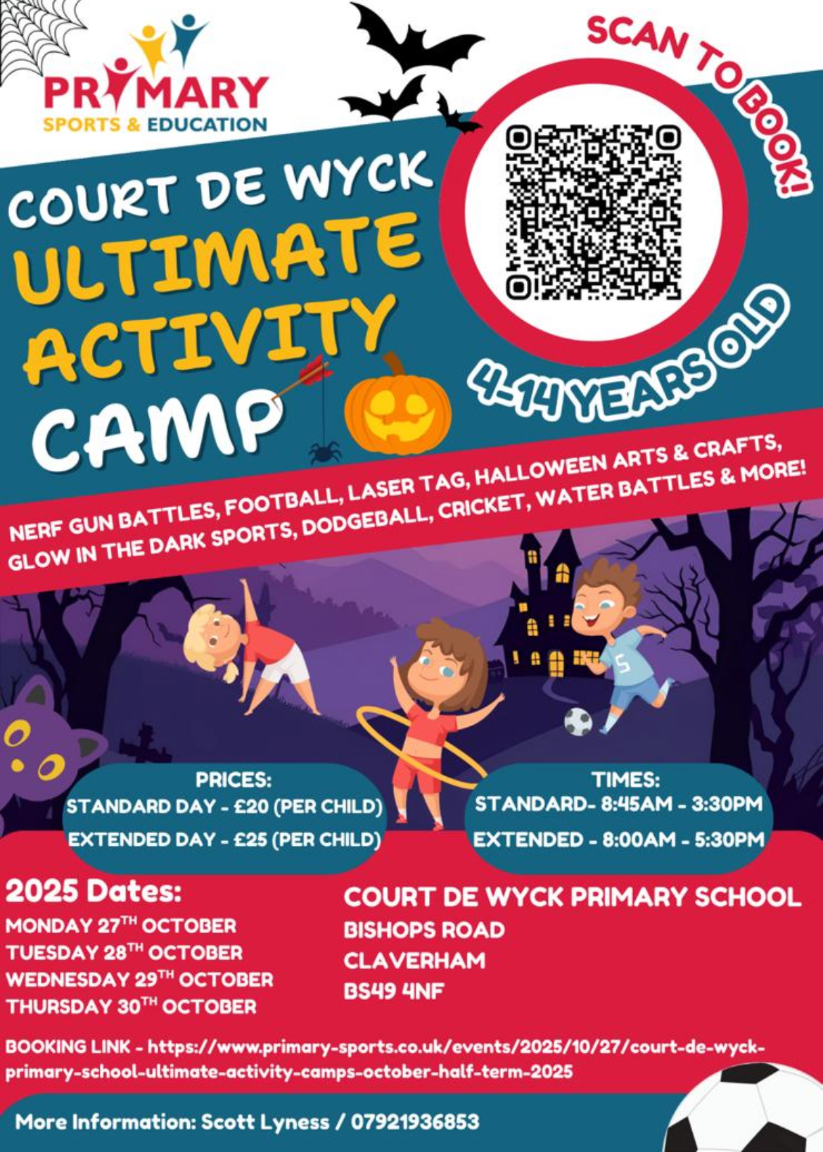 Mr Lyness is holding a holiday club at CdW during the October Half Term. Please contact Scott for more information.